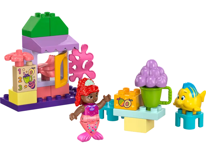 Odkryj magiczny świat podwodnych przygód z zestawem LEGO DUPLO ǀ Disney Stoisko kawowe Arielki i Florka (10420). To idealny prezent dla małych fanów Małej Syrenki, którzy mogą bawić się już od drugiego roku życia, wraz z ulubionymi postaciami z serialu Ariel produkcji Disney Junior.