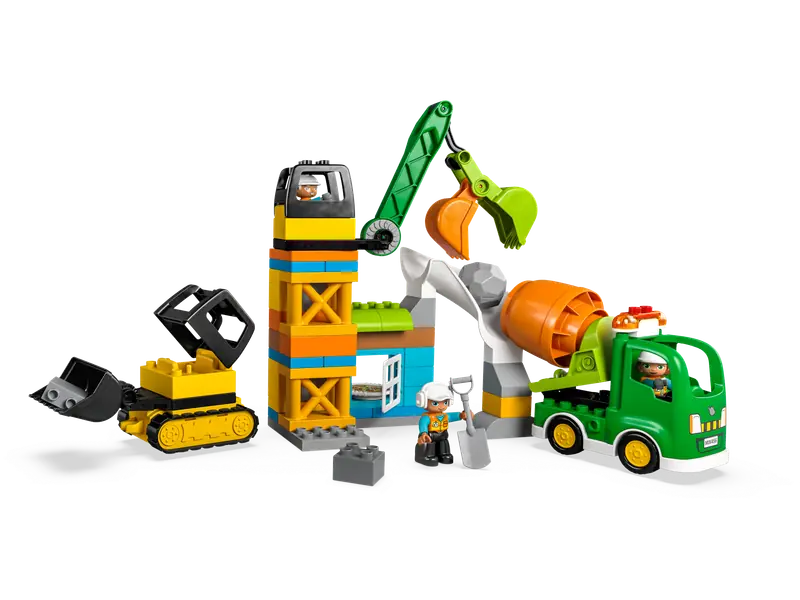 Rozwijaj zdolności dziecka z zestawem LEGO DUPLO Town Budowa (10990). Ta szczegółowa zabawka inspiruje do kreatywnej zabawy i wspiera rozwój umiejętności wyrażania siebie. Dzieci w wieku od dwóch lat mogą uczyć się współpracy, gdy trzy postacie obsługują trzy maszyny. Buldożer dostarcza materiały, dźwig przenosi je do zsypu, a stamtąd trafiają one do betoniarki. Po zakończonej pracy budowniczowie mogą cieszyć się pizzą.