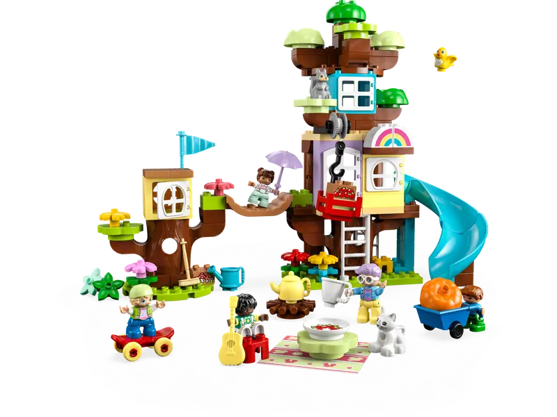 - Kreatywny domek na drzewie dla najmłodszych – zestaw LEGO DUPLO Domek na drzewie 3 w 1 (10993) pozwala dzieciom odkrywać korony drzew, rozwijać wyobraźnię i doskonalić zdolności motoryczne