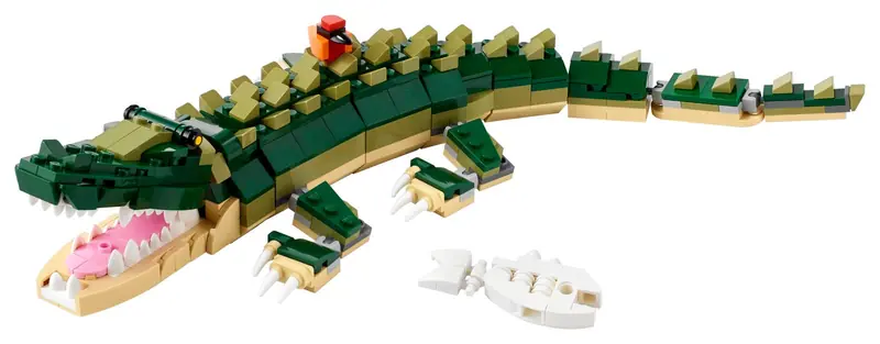 Zestaw LEGO Creator 3 w 1 Krokodyl (31121) przenosi dzieci w fascynujący świat dzikiej przyrody nad rzeką. W zestawie znajduje się ruchomy krokodyl z otwieraną szczęką, ptaszek oraz szkielet ryby, które inspirują do tworzenia własnych przygód.