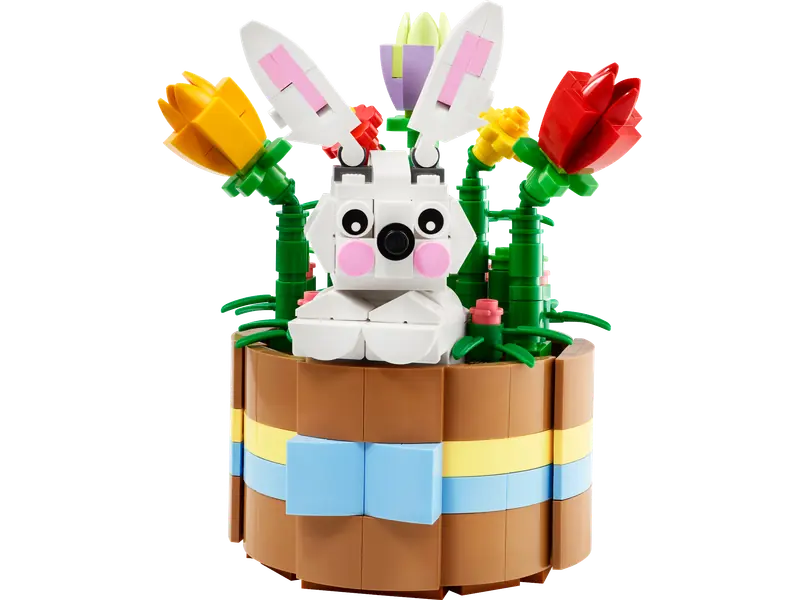 Świętuj Wielkanoc i nadejście wiosny z zestawem LEGO Wielkanocny koszyk (40587). W uroczym brązowym koszyczku, wypełnionym wiosennymi kwiatami, znajduje się ruchomy króliczek. Jego głowa obraca się, a uszy zginają, co dodaje zabawie interaktywności. Ten model to doskonała dekoracja na święta lub prezent dla młodych budowniczych w wieku od dziewięciu lat, nastolatków i dorosłych.