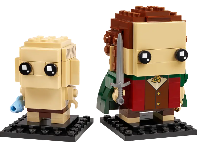 - Zestaw kolekcjonerski LEGO BrickHeadz Frodo i Gollum (40630) – zawiera pełnowymiarową figurkę Frodo z mieczem i pierścieniem oraz mniejszy model Golluma z rybą