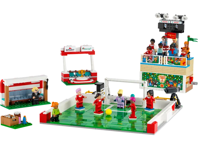 Zachwyć młodego fana futbolu w wieku od 12 lat zestawem LEGO Ikony zabawy (40634), który obejmuje połowę boiska piłkarskiego z bramką i stanowiskiem VAR, trybuny z tablicą wyników, scenę do celebracji oraz dodatkowe elementy. Wśród 15 minifigurek znajdują się wizerunki słynnych piłkarzy, takich jak błyskotliwa i pomysłowa Megan Rapinoe, wszechstronnie uzdolniona Yūki Nagasato, wybitna napastniczka Sam Kerr i globalna gwiazda Asisat Oshoala. To doskonały pomysł na prezent dla entuzjastów piłki nożnej.