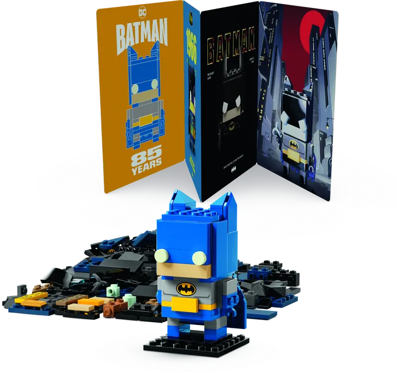 Kolekcjonerska seria LEGO Batman na 85-lecie Batmana (40726) to unikalny pakiet dla młodych budowniczych w wieku od 10 lat. Zawiera on osiem plakatów przedstawiających różne inkarnacje Batmana oraz rewelacyjną figurkę BrickHeadz, którą można zbudować aż w ośmiu stylach: (1) Batman komiksowy, (2) Batman z oryginalnego serialu telewizyjnego, (3) Batman z 1989 roku, (4) Batman z kultowego serialu animowanego, (5) Batman z trylogii Mroczny rycerz, (6) Batman z filmu Batman v Superman, (7) Batman z LEGO Batman: Filmu, (8) klasyczny Batman. Ten wyjątkowy prezent dla fanów Batmana to doskonały sposób na upamiętnienie 85-lecia tego bohatera.