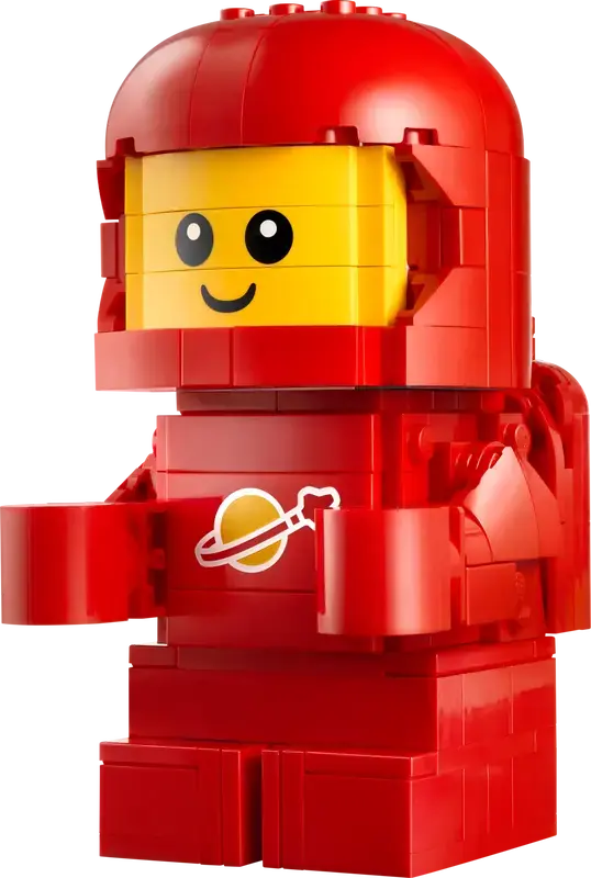 - Mały astronauta - ta kosmiczna figurka LEGO ma radosny wyraz twarzy i jest ubrana w stylowy czerwony kombinezon z nadrukiem planety