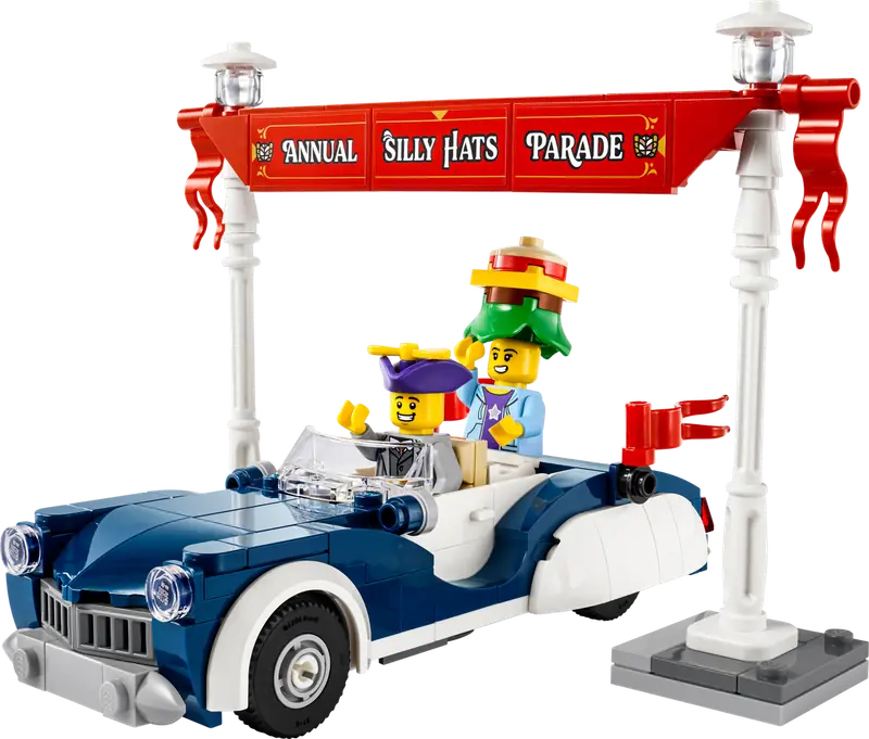 - Kolekcjonerski zestaw LEGO - ten zestaw LEGO Icons zawiera wszystko, co potrzebne do zbudowania samochodu z parady, a także dwie stylowe latarnie, transparent i dwie minifigurki z akcesoriami