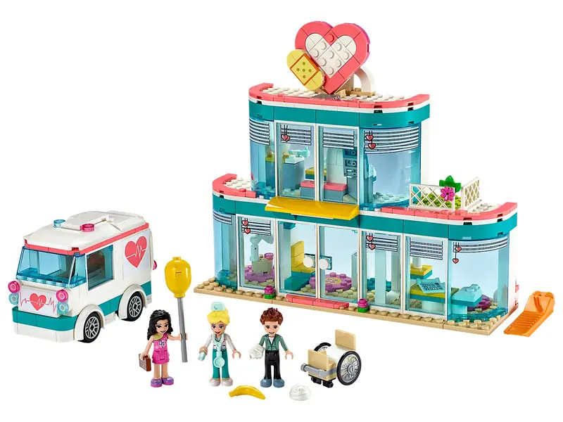 - Zestaw zawiera sprzęt medyczny do złożenia, np. aparat rentgenowski i mikroskop, oraz akcesoria takie jak opatrunek, stetoskop, strzykawka i termometr. W komplecie znajdują się też trzy minilaleczki LEGO Friends: Emma, Ethan i dr Maria. Dodatkowe elementy, jak nosze, wózek inwalidzki i zabawkowa karetka, umożliwiają jeszcze bardziej kreatywną zabawę.