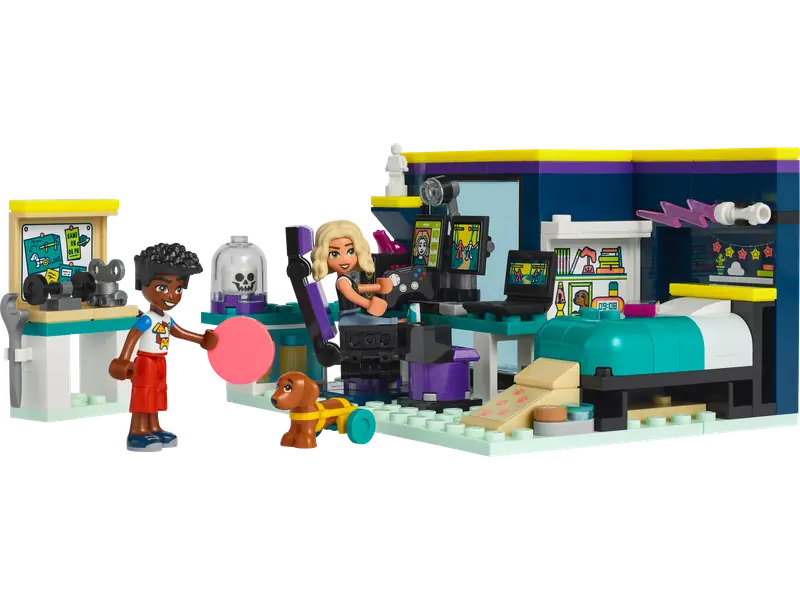 Kolekcja LEGO Friends Pokój Novy (41755) oferuje niekończącą się zabawę dla dzieci od szóstego roku życia. Zac odkrył, że dzieli z Novą wspólną pasję do gier, co umacnia ich przyjaźń. Młodzi fani mogą eksplorować liczne funkcje pokoju, w tym komputer z klawiaturą i neonowymi wentylatorami, fotel gamingowy oraz mikrofon. Dodatkowo, zestaw zawiera elementy związane z opieką nad przygarniętym psem Picklem, takie jak stół warsztatowy, wózek inwalidzki dla psa oraz rampa umożliwiająca mu wspinanie się na łóżko. W sypialni ukryte są również detale, np. plakat, które odkrywają inne zainteresowania Novy.