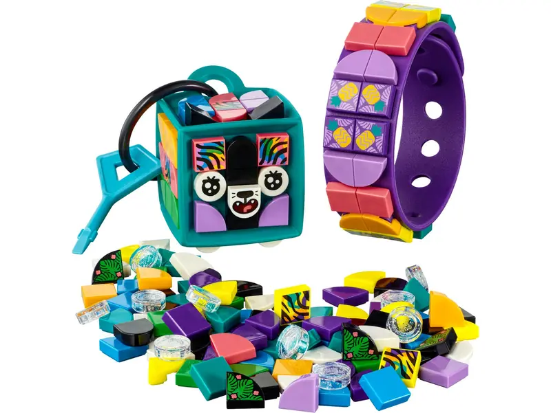 - Bogactwo zwierzęcych wzorów - młodzi budowniczowie mogą wykorzystać fioletową, regulowaną bransoletkę i zielononiebieską zawieszkę oraz szeroką gamę płytek w tropikalnych i neonowych kolorach do tworzenia unikalnych projektów.