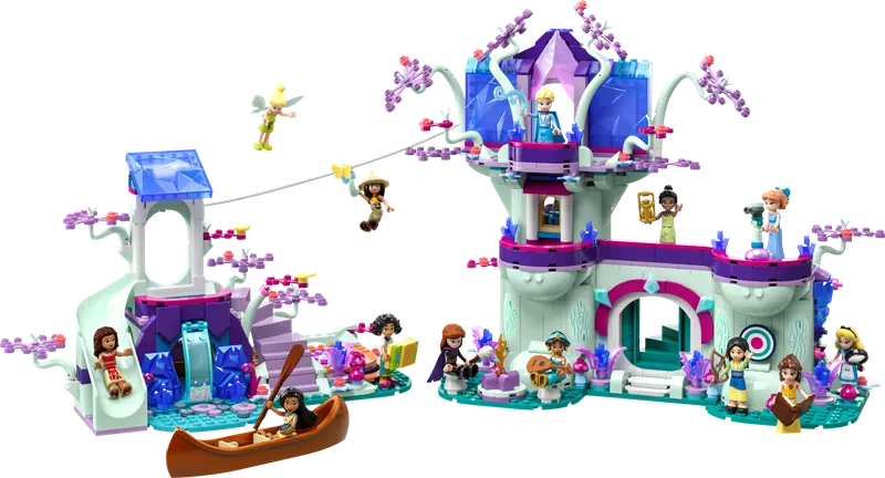 Rozbudź kreatywność młodych budowniczych w wieku od 7 lat za pomocą zestawu LEGO ǀ Disney Magiczny domek na drzewie (43215). Zestaw obejmuje dwupoziomowy domek na drzewie, wodospad z funkcją zjeżdżalni, ukrytą jaskinię, tyrolkę, tajne schody, canoe i ognisko. W komplecie znajduje się 13 minifigurek LEGO oraz liczne akcesoria i mechanizmy, które zachęcają do zabawy. Podczas składania dzieci mogą korzystać z aplikacji LEGO Builder, która umożliwia powiększanie, obracanie modeli i śledzenie postępów w budowie.