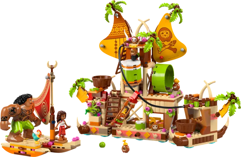 W zestawie znajduje się dziewięć postaci LEGO ǀ Disney: Vaiana, Maui, kurczak Heiheia, Kotu (bohater Kakamorów) oraz pięciu innych Kakamorów, co zachęca do odtwarzania scen i tworzenia własnych historii.