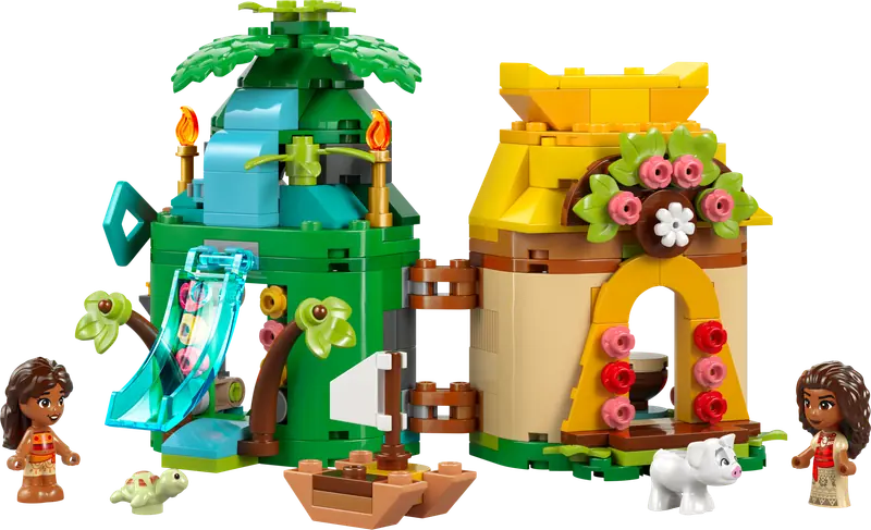 - Mikroświat do składania - zestaw zawiera dwustronny model domku i wyspy z kluczem, mikrolaleczki LEGO ǀ Disney: Vaianę, Simeę i Puę