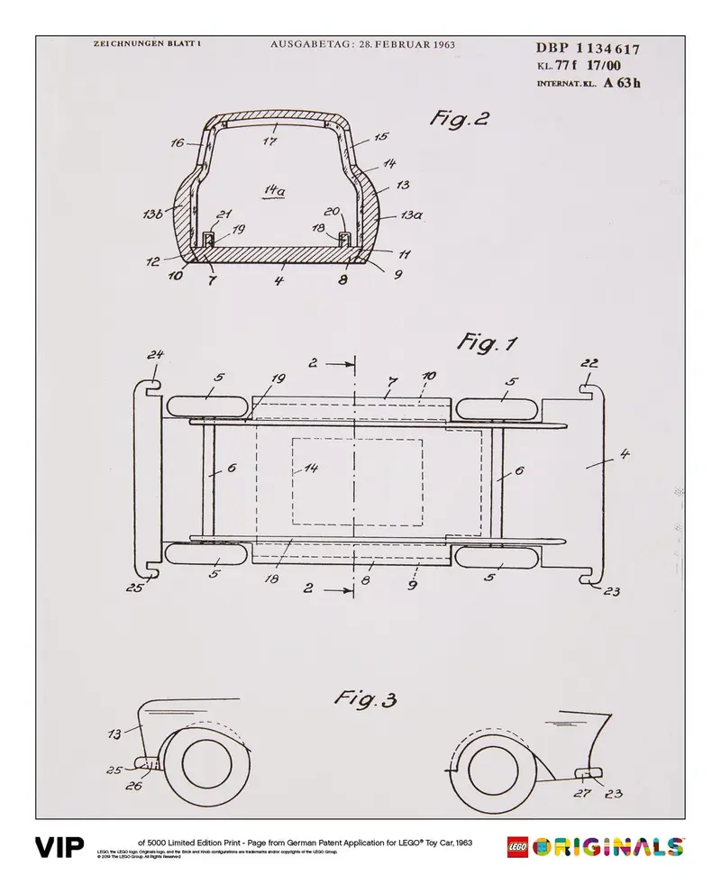 LEGO 5006006 Samochód-zabawka LEGO z niemieckiego patentu z 1963 roku
