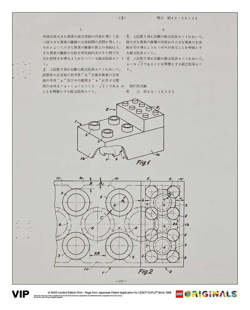 LEGO 5006007 Japoński patent Klocek LEGO DUPLO 1968 Plakat artystyczny