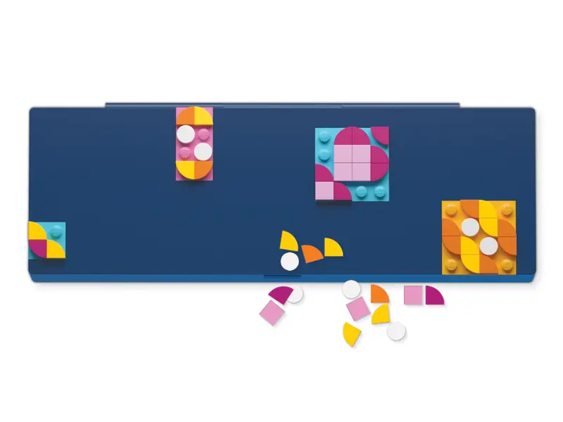 - Piórnik zawiera 4 autentyczne płytki konstrukcyjne LEGO: dwie kwadratowe płytki 4x4, jedną kwadratową płytkę 2x2 oraz jedną prostokątną płytkę 2x4. W komplecie jest również 46 kolorowych płytek ozdobnych.