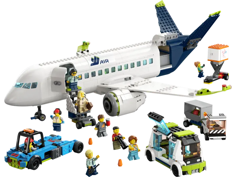 Oto wyjątkowa propozycja dla miłośników modeli lotniczych. Zestaw LEGO City Samolot pasażerski (60367) przeznaczony dla dzieci od 7. roku życia oferuje mnóstwo realistycznych detali i funkcji. Elegancki samolot pasażerski posiada szczegółowe wnętrze z kokpitem, fotelami, przejściem i toaletą, a także dodatkowe elementy takie jak schody, autobus lotniskowy, holownik, furgonetka cateringowa i furgonetka bagażowa. W zestawie znajduje się również dziewięć minifigurek, które zachęcają do kreatywnej zabawy.