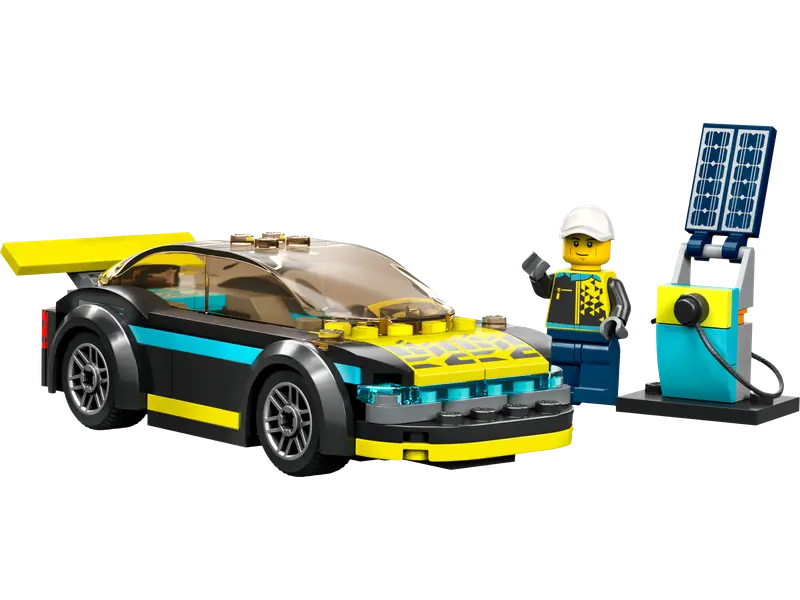 Młodzi budowniczowie, którzy uwielbiają zabawę samochodami, z pewnością pokochają zestaw LEGO City Elektryczny samochód sportowy (60383), charakteryzujący się futurystycznymi neonowożółtymi elementami, stylowymi felgami i dużym spojlerem. W zestawie znajduje się również zabawkowa stacja ładowania oraz minifigurka kierowcy, co umożliwia odgrywanie różnorodnych scenariuszy.
