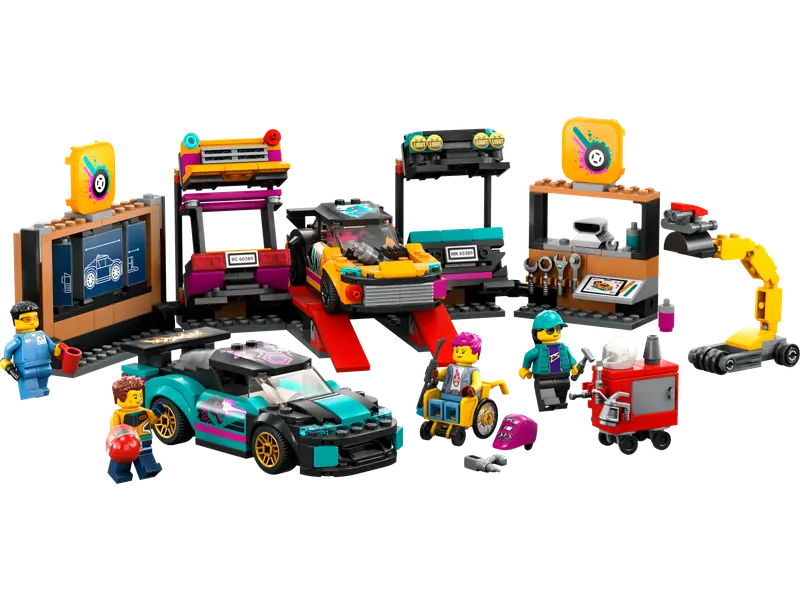 Przekształcanie samochodów staje się niezwykle proste dzięki zestawowi LEGO City Warsztat tuningowania samochodów (60389), który oferuje warsztat z licznymi funkcjami oraz dwa pojazdy do modyfikacji. Młodzi budowniczowie mogą wybierać silniki, a także przednie i tylne moduły z różnorodnymi światłami, zderzakami i spojlerami, aby stworzyć unikalny samochód. Zestaw zawiera również dwie minifigurki mechaników, dwie minifigurki kierowców oraz dodatkowe akcesoria.