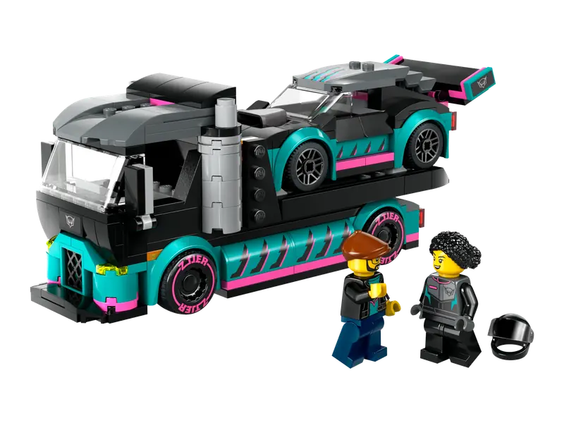 - Model lawety LEGO - dzieci mogą opuścić rampę ciężarówki, aby załadować samochód wyścigowy i wyruszyć w podróż na tor, gdzie odbędzie się emocjonujący wyścig między dwoma pojazdami