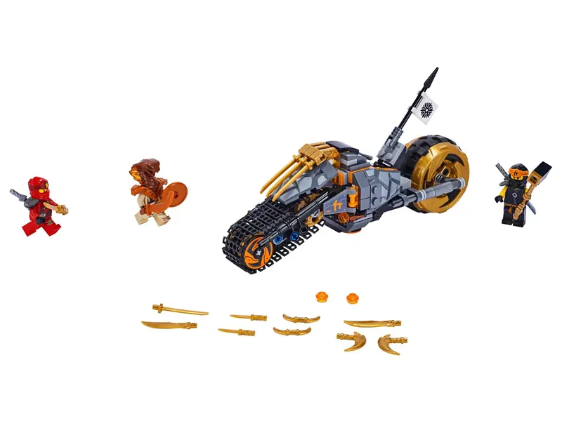 - Motocykl Cole’a posiada siedzenie dla minifigurki, dwa miotacze kulek, przednie gąsienice, tylne koło ze złotymi felgami oraz flagę ninja.