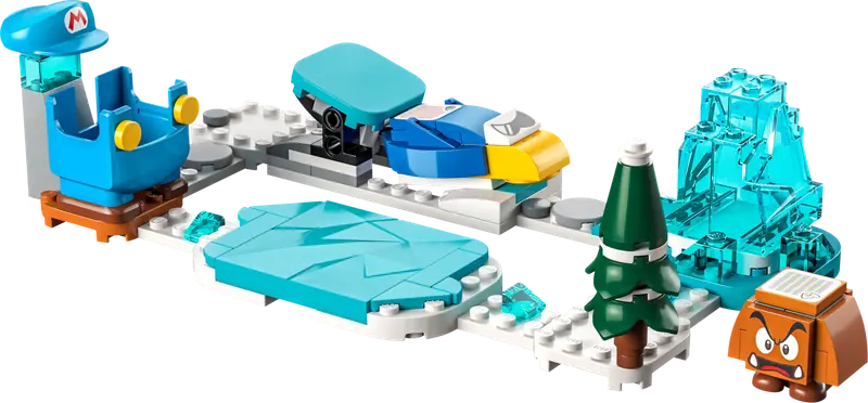 Młodzi budowniczowie mogą stworzyć lodowy poziom w uniwersum LEGO Super Mario przy użyciu zestawu Mario – lodowy strój i kraina lodu – zestaw rozszerzający (71415). W skład wchodzi lodowy strój dla figurki LEGO Mario (która nie jest częścią zestawu) oraz minifigurki Cooligana i Goomby. Niebieska płytka lodowa wydaje dźwięki jazdy na łyżwach, gdy LEGO Mario po niej przejeżdża. Zestaw zawiera też wyrzutnię, z której można wystrzelić Cooligana w stronę bloku lodu – po jego rozbiciu pojawia się Goomba. (Uwaga: do zabawy konieczny jest zestaw startowy 71360, 71387 lub 71403).