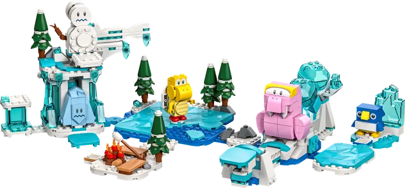 Dzięki kolekcji Lodowa eskapada Fliprusa – zestaw rozszerzający (71417), mali fani LEGO Super Mario mogą stworzyć ekscytujący poziom lodowy, by wspólnie bawić się i zdobywać cyfrowe monety. Użyj figurek LEGO Mario, LEGO Luigiego oraz LEGO Peach (brak w zestawie) do pokonania przeciwników: Fliprusa, Freeziego i czerwonego Koopy Troopy. Przeżywaj lodowe przygody, jeżdżąc na łyżwach po "lodzie", ogrzewając się przy ognisku oraz dostarczając ukryty zamrożony owoc pingwinowi (Uwaga: wymagany jest zestaw startowy 71360, 71387 lub 71403).