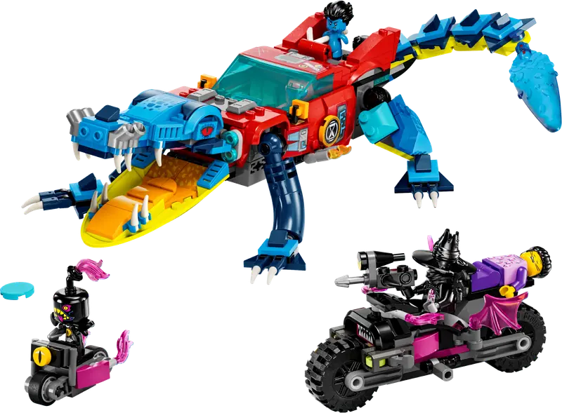 Zestaw LEGO DREAMZzz Krokodylowy samochód (71458) przenosi młodych budowniczych w wieku od ośmiu lat do świata snów, gdzie mogą przeżywać emocjonujące przygody inspirowane serialem telewizyjnym. Dzieci mają możliwość zbudowania pojazdu, który pomoże uratować Jaydena przed Nocnym Łowcą, oferując dwie różne opcje konstrukcji i mnóstwo kreatywnych możliwości. Dwa sposoby budowania i zabawy Zestaw pozwala na zbudowanie krokodylowego samochodu wyposażonego w ruchome kończyny oraz miotacz dysków ukryty w przedniej kratce, co umożliwia strzelanie dyskami z „paszczy” krokodyla. Alternatywnie, dzieci mogą skonstruować superszybką terenówkę z obracającymi się kołami i zdejmowanym dachem, co pozwala na umieszczenie w niej minifigurki. Oba tryby zachęcają do wymyślania własnych historii i dynamicznej zabawy. Szczegółowe minifigurki i akcesoria W zestawie znajdują się trzy minifigurki: Cooper, Jayden oraz Nocny Łowca wraz z jego motocyklem i złym pomocnikiem. Dzięki temu dzieci mogą odtwarzać sceny z serialu lub tworzyć własne, pełne akcji opowieści. Idealny prezent dla młodych fanów Zestaw oferuje godziny kreatywnej zabawy zarówno samodzielnej, jak i w grupie. W największej konfiguracji model osiąga imponujące wymiary: 8 cm wysokości, 45 cm długości i 15 cm szerokości. Instrukcje budowania, dostępne także w formie cyfrowej w aplikacji LEGO Builder, są oparte na fabule serialu, co dodatkowo wzbogaca doświadczenie. Najwyższa jakość i bezpieczeństwo Klocki LEGO są zaprojektowane tak, aby łatwo się łączyły, a ich jakość i bezpieczeństwo zostały potwierdzone przez rygorystyczne testy. Zestaw spełnia najwyższe standardy, gwarantując dzieciom bezpieczną i satysfakcjonującą zabawę.