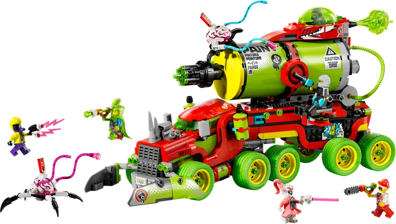 Mali fani serii LEGO DREAMZzz będą zachwyceni możliwością zbudowania ciężarówki, a następnie jej przebudowania na ogromną puszkę farby w sprayu lub wyrzutnię rakiet. Zestaw zawiera wiele ciekawych detali, takich jak miotacze klocków, otwierany kokpit oraz modułowe miotacze i puszki sprayu, które są kompatybilne z innymi zestawami z serii LEGO DREAMZzz z 2025 roku (sprzedawanymi oddzielnie). W zestawie znajdują się również znane postacie, które inspirują do zabawy w odgrywanie ról: minifigurki Mateo, Coopera, Pana Oza, One i D-Shocka, a także figurki Alberta i dwóch cyberpająków-mózgowców.