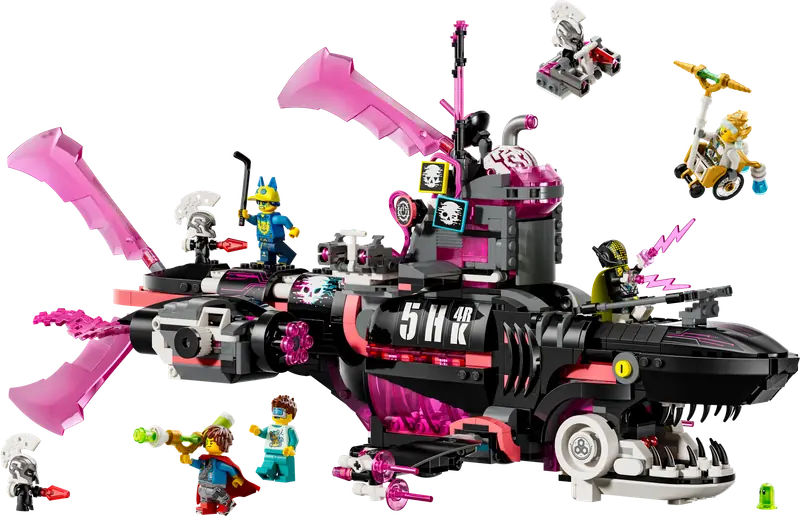 Młodzi agenci snów mogą zbudować model rekina, a następnie przekształcić go w łódź podwodną w kształcie rekina lub okręt wojenny w kształcie rekina młota. Zestaw zawiera odczepiane małe samoloty, miotacze klocków, pociski wystrzeliwane z paszczy rekina, otwierany kokpit i więzienie wewnątrz. Model wyposażony jest również w modułowe miotacze kompatybilne z innymi zestawami z serii LEGO DREAMZzz z 2025 roku (sprzedawanymi osobno). Minifigurki Mateo, Logana, Astrid, Śniszczyciela i śniącego, a także figurki Z-Bloba i trzech cyberludków, ożywiają akcję i zachęcają do kreatywnego odgrywania ról.