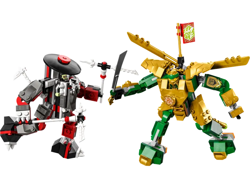 Dzieci w wieku od sześciu lat będą zachwycone, odkrywając ekscytujący świat akcji LEGO NINJAGO poprzez budowanie i zabawę zestawem Starcie Lloyda z Mechem EVO (71781). Zestaw zawiera dwa ruchome mechy, oba wyposażone w imponującą broń, co pozwala dzieciom na organizowanie pasjonujących bitew. Dzieci mogą ulepszyć mecha Lloyda złotą zbroją i skrzydłami, aby pomóc mu odnieść zwycięstwo.