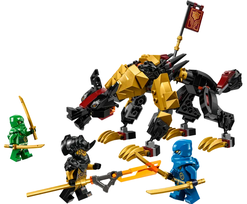 - Trzy minifigurki - zestaw NINJAGO zawiera minifigurki Lloyda i Jaya z dwiema katanami oraz minifigurkę imperialnego generała szponiastych z dużym mieczem