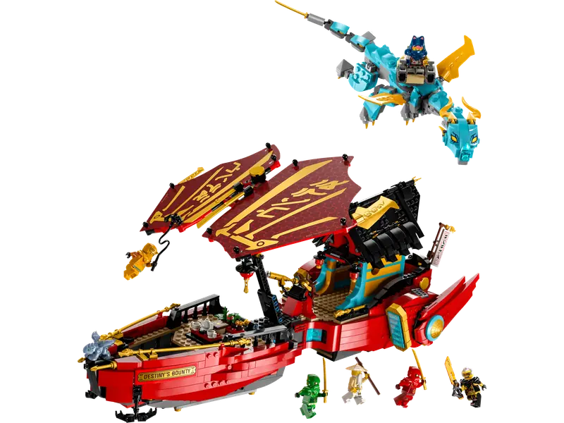 Młodzi budowniczowie w wieku od dziewięciu lat będą zachwyceni możliwością odtwarzania emocjonujących wyścigów w odświeżonym statku powietrznym z zestawu Perła Przeznaczenia - wyścig z czasem (71797). Kultowy pojazd został przekształcony w statek powietrzny, umożliwiający ninja latanie nad połączonym światem. Posiada wyjmowanego smoka z przodu, ruchome żagle, tylne miotacze klocków oraz obracające się o 360 stopni silniki. Dach można zdjąć, aby odsłonić pomieszczenie nawigacyjne i pokój zabaw z automatem do gier.