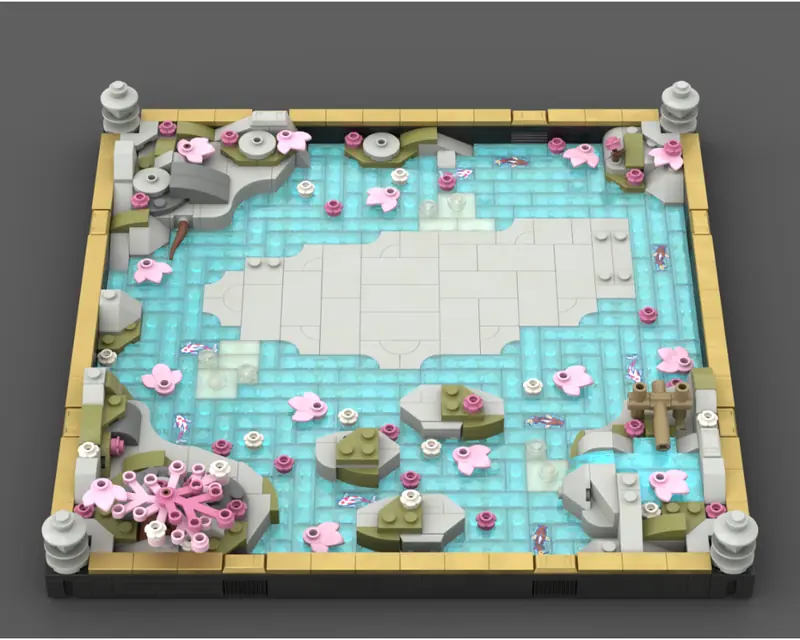 W skład zestawu wchodzi kamienny smok, ruchoma część treningowa przesuwana podczas walki, wodospad, kwitnące drzewo wiśniowe, biblioteka ze zwojami, książkami i zestawem do herbaty oraz ukryty pokój, który można odkryć poprzez naciśnięcie książek w bibliotece.