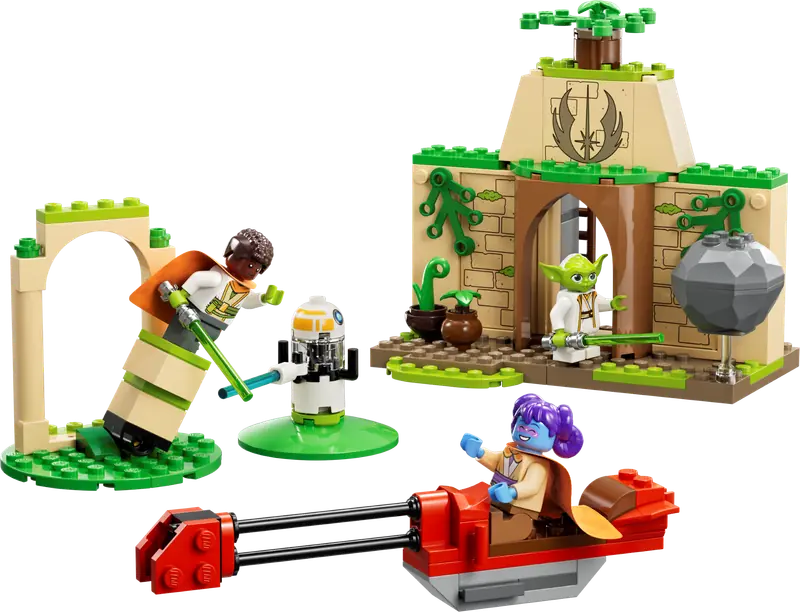 - Ścigacz i sprzęt treningowy Jedi - ścigacz pomieści wszystkie trzy minifigurki LEGO, a droid treningowy i test równowagi rozwijają dziecięcą wyobraźnię