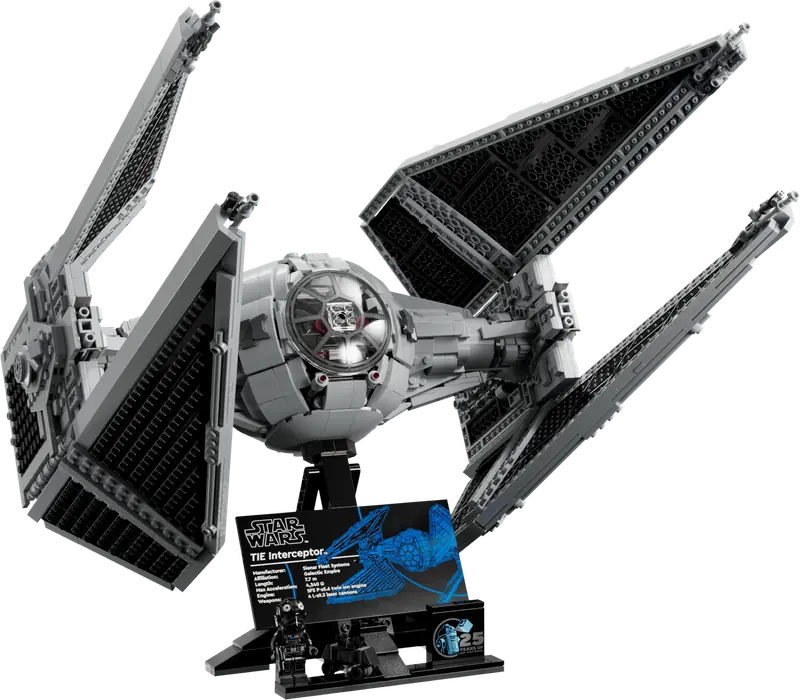 - Model TIE Interceptora do zbudowania – zbuduj dużą wersję TIE Interceptora z serii LEGO Star Wars Ultimate Collector Series. Ten myśliwiec po raz pierwszy pojawił się w „Gwiezdnych Wojnach: Powrocie Jedi”.