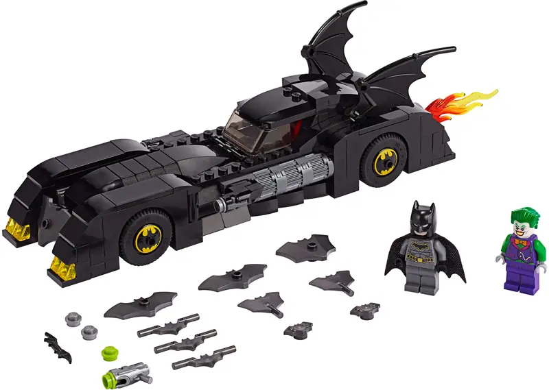 - Batmobile posiada otwieraną kabinę z miejscem na minifigurkę i szczegółową deską rozdzielczą, dwa ukryte, rozkładane miotacze klocków, podnoszoną maskę, zbudowany z klocków silnik, funkcję automatycznego obracania płomienia w rurze wydechowej, symbole Batmana na felgach, dwa skrzydła nietoperza oraz przezroczyste żółte i czerwone lampy.