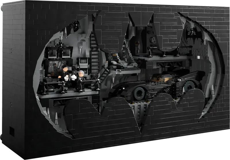 Mierząca 51 cm wysokości diorama zawiera liczne autentyczne detale, w tym ruchome elementy sterowane z tyłu. Można obracać fotel, zmieniać ekran komputera, otwierać i zamykać magazyn narzędzi oraz oświetlać skarbiec ze strojem Batmana. Realizmu dodaje Batmobil z wieloma funkcjami oraz siedem minifigurek: Max Shreck, Pingwin, Kobieta-Kot, dwie wersje Batmana, Alfred Pennyworth i Bruce Wayne. Cyfrową wersję instrukcji można znaleźć w aplikacji LEGO Builder.