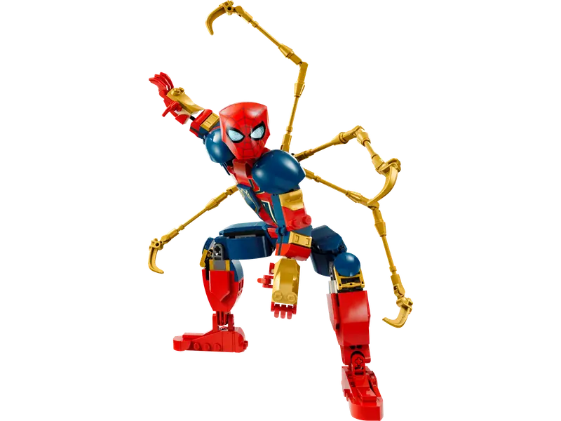 Figurka superbohatera ma 27 cm wysokości i ruchome ramiona, ręce, biodra oraz nogi, co pozwala młodym fanom na kreatywne odgrywanie dynamicznych przygód. Ubrana w nowoczesną zbroję Iron Spider-Mana, zaprojektowaną przez Tony'ego Starka, posiada cztery dodatkowe, ruchome ramiona. Aplikacja LEGO Builder oferuje dodatkową cyfrową zabawę, umożliwiając powiększanie i obracanie modeli w 3D oraz śledzenie postępów podczas budowania.