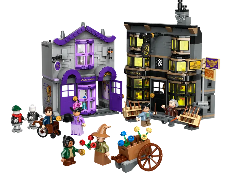 Zestaw zawiera sześć minifigurek LEGO: Harry’ego Pottera, Garricka Ollivandera, Madame Malkin, Padmę Patil, ucznia i wiedźmę z kwiatami, które zachęcają do tworzenia własnych historii.