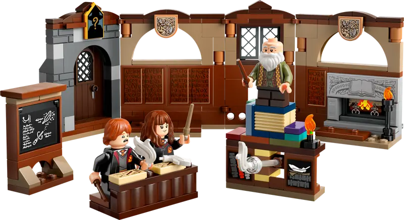 Klasa Hogwartu jest rozkładana, co ułatwia kreatywną zabawę. Zawiera funkcję lewitujących piór po rzuceniu zaklęcia "Wingardium Leviosa", odczepiane biurka dla uczniów oraz zdejmowaną tablicę z instrukcjami zaklęć. W zestawie znajdują się również minifigurki LEGO Harry Potter: Rona Weasleya, Hermiony Granger i profesora Flitwicka, które pozwalają na odgrywanie różnorodnych, magicznych historii.