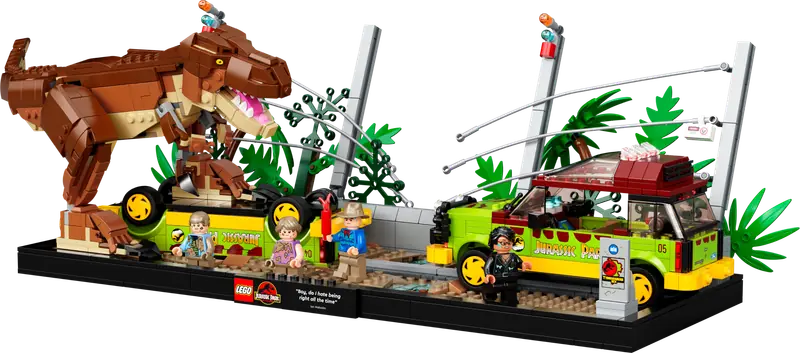 Zagłęb się w rolę reżysera za sprawą zestawu LEGO Jurassic Park Ucieczka Tyranozaura (76956), który umożliwia zbudowanie i wyeksponowanie modelu. Inspiracją dla tego kolekcjonerskiego pakietu był kultowy moment z filmu „Park Jurajski”. Zestaw zawiera ruchomą figurkę tyranozaura, zniszczony płot elektryczny oraz cztery minifigurki: Alana Granta, Iana Malcolma, Tima Murphy’ego i Lex Murphy. Dodatkowo, na konstruktorów czekają akcesoria takie jak noktowizor do zbudowania, flara, dwie szklanki wody oraz inne elementy nawiązujące do słynnej sceny filmowej.