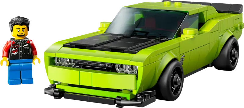 To pierwszy nowoczesny samochód marki Dodge w serii LEGO Speed Champions - ten dwudrzwiowy muscle car typu coupe z długą maską, wypukłym wlotem powietrza na masce, imponującym przednim grillem i dwiema rurami wydechowymi. Kolekcjonerski model zawiera również minifigurkę kierowcy, umożliwiając dzieciom i fanom samochodów typu muscle car organizowanie wyścigów torowych lub ulicznych.