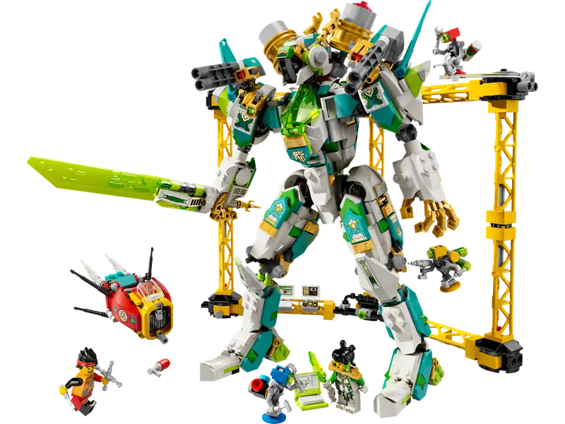 - Zestaw z Mei - ten kolekcjonerski zestaw LEGO Monkie Kid zawiera ruchomy mech, podniebny motocykl i warsztat serwisowy, a także minifigurki Mei i Monkie Kida oraz trzy roboty